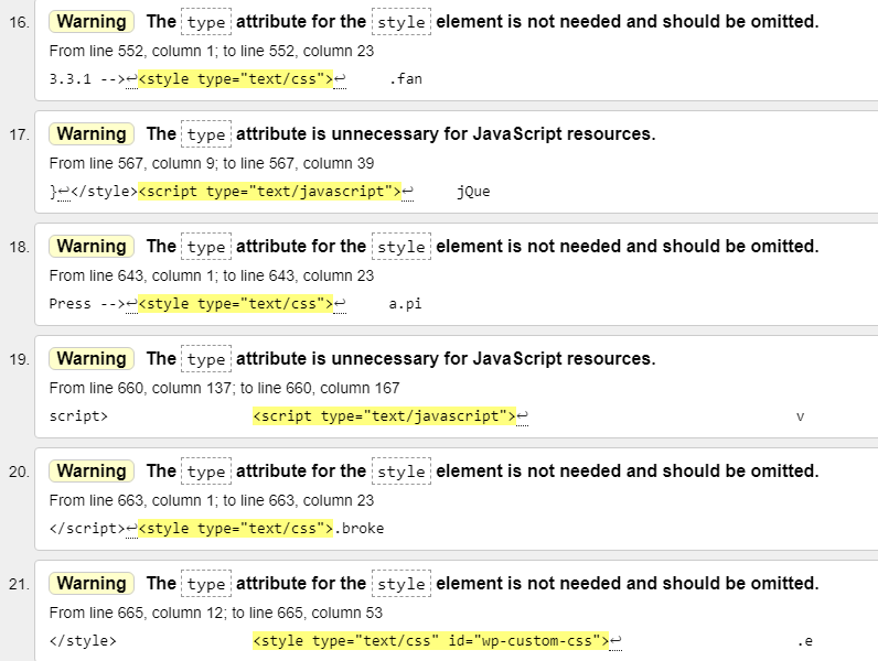 Sempre que você alterar um tema ou adicionar um plugin, considere passar seu site através de um verificador de validação. O WordPress recomenda validação regular para detectar possíveis problemas no CSS e HTML do seu site. Aqui está um exemplo de como a validação html pode parecer: